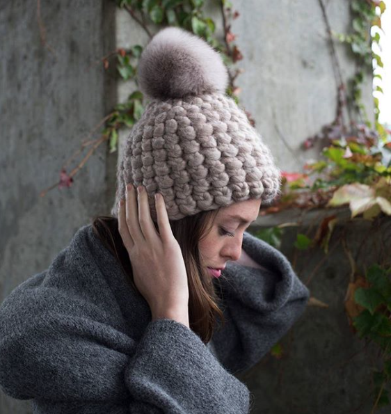 pamela tick and elayna dos santos are wearing our chic taupe beanie pomster + taupe xl pom @pamelatick @elaynadossantos