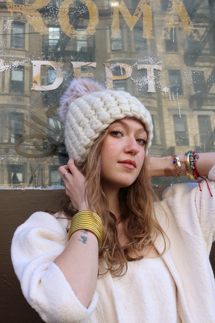 material | 100% fine merino wool, hand spun and hand crocheted at our soho studio in our signature chunky style