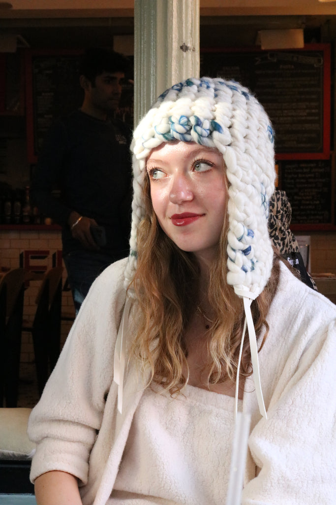 material | 100% fine merino wool, hand spun and hand crocheted at our soho studio in our signature chunky style