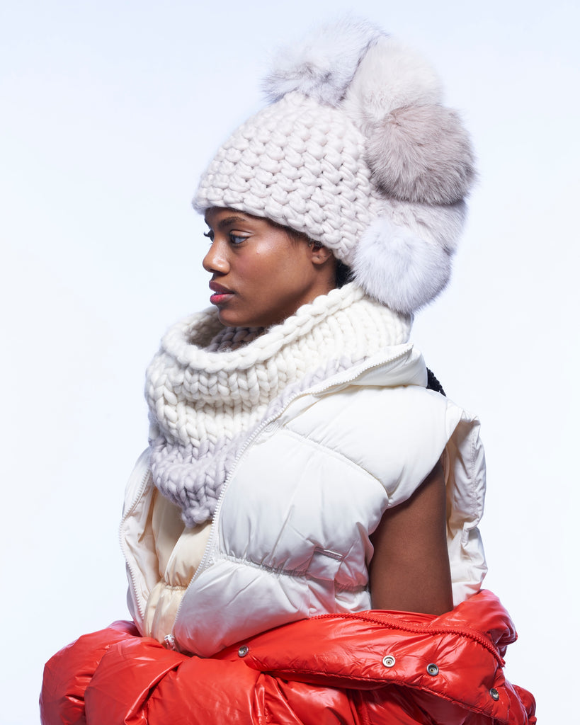 white/grey mix blend crown + arctic grey | silver fox | arctic grey xl poms