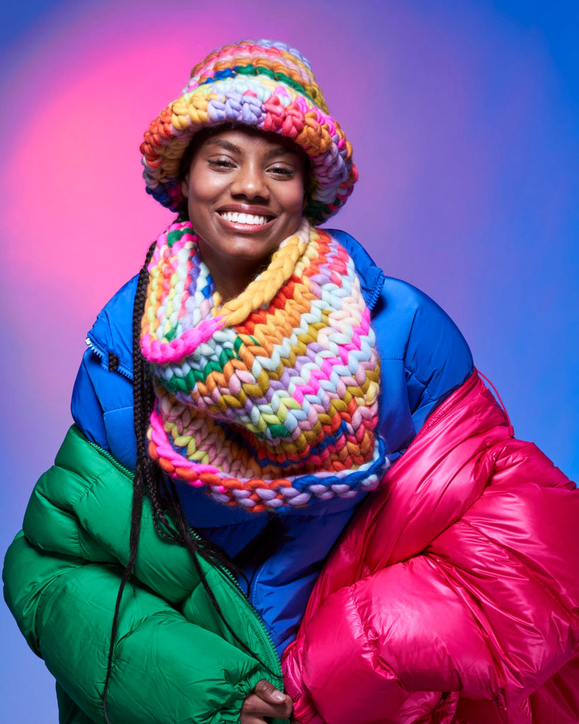material | 100% fine merino wool, hand spun and hand knit at our soho studio in our signature chunky style