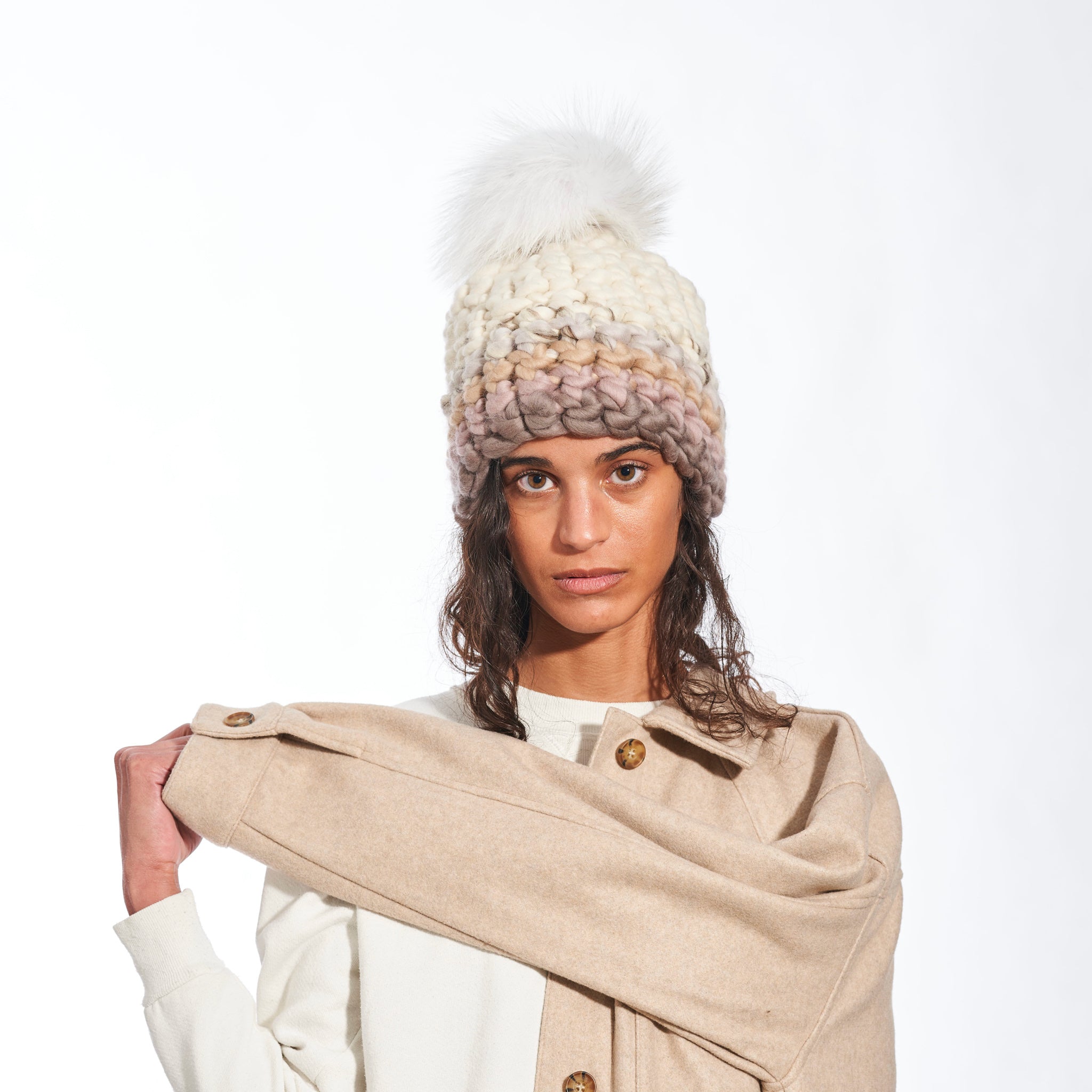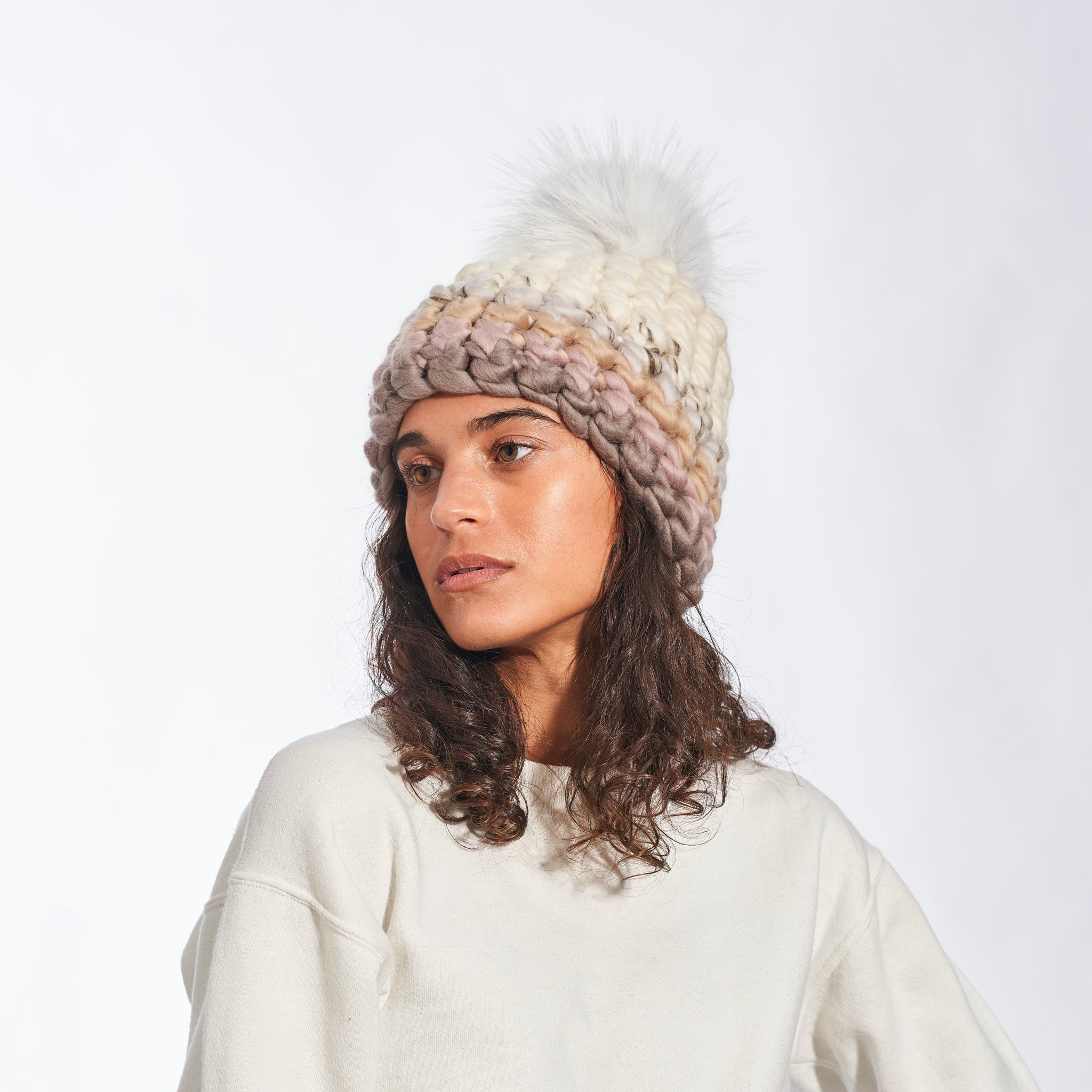 semi beanie stripe + white xl pom