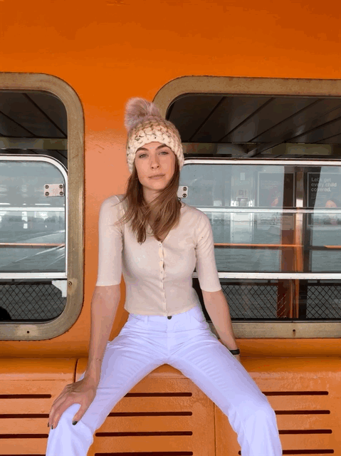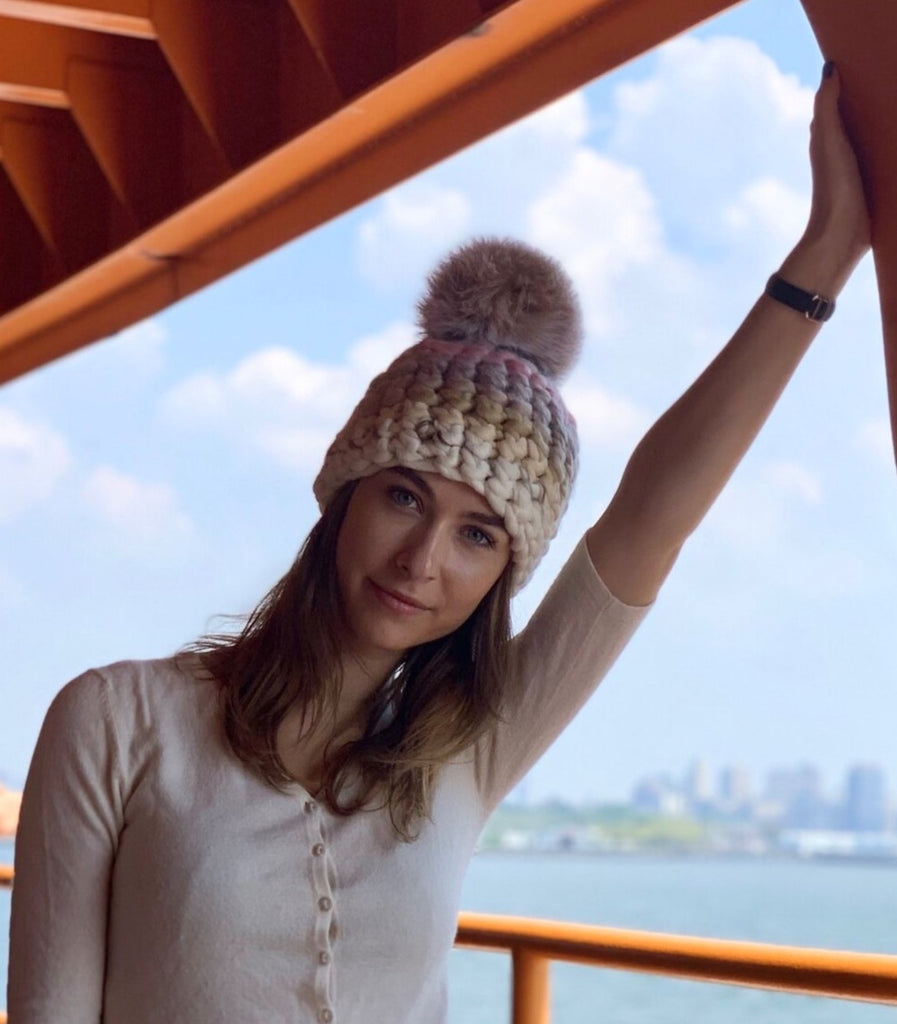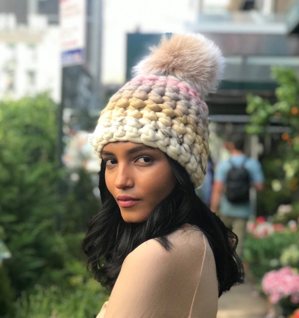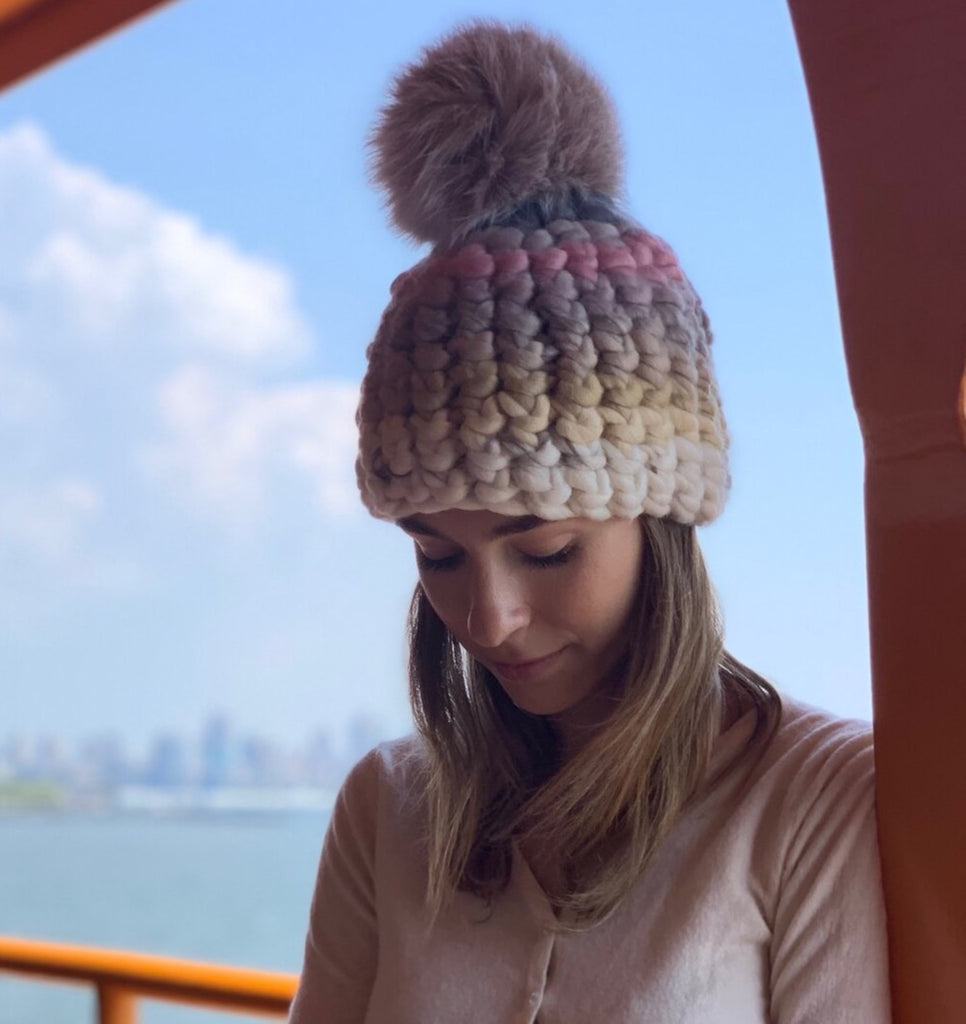 pastel beanie stripe + blush xl pom
