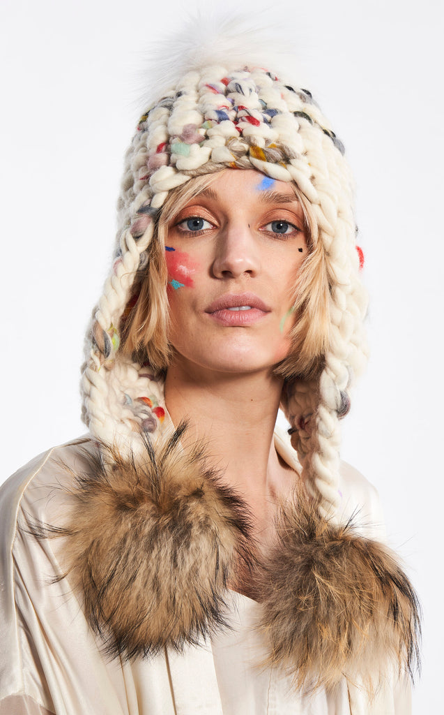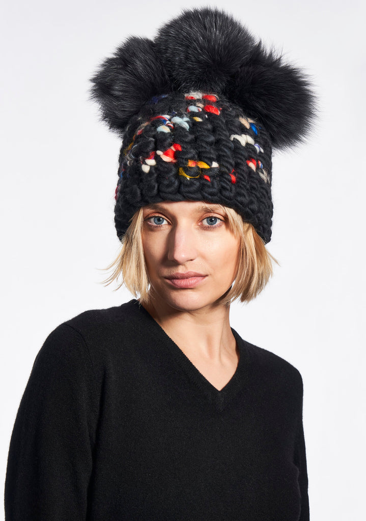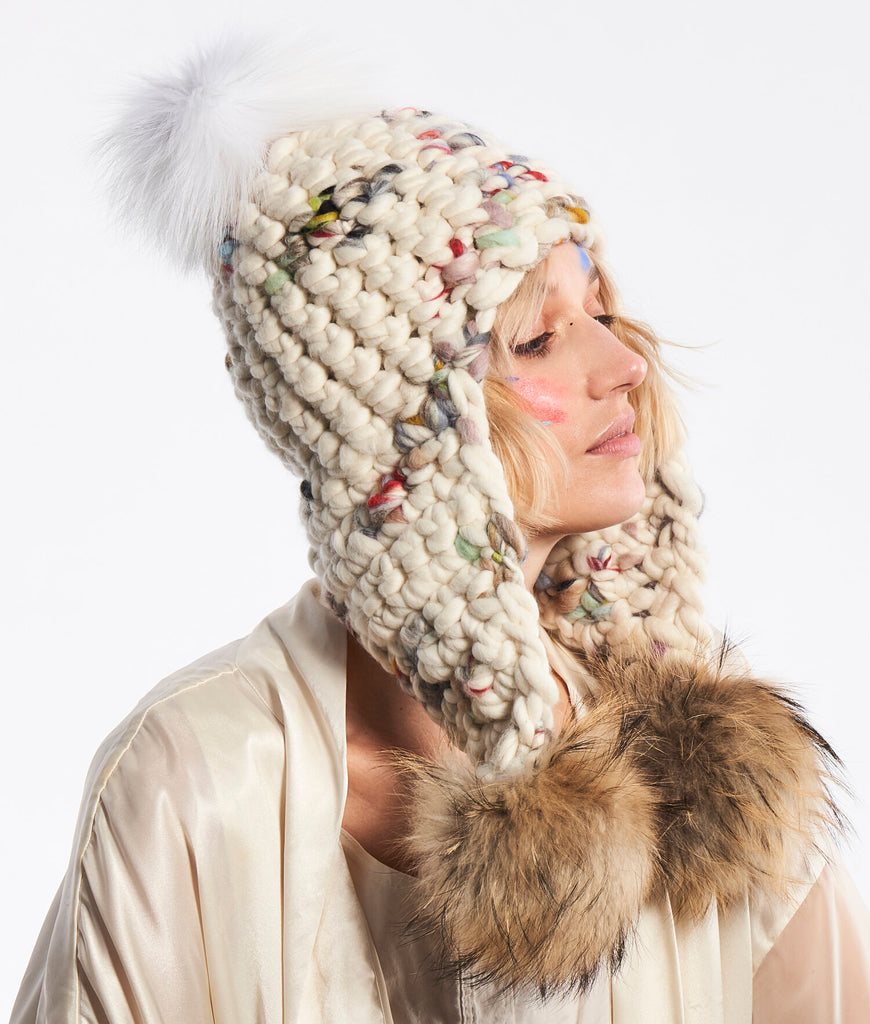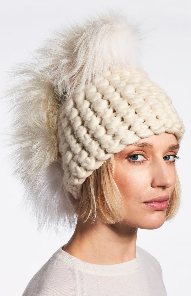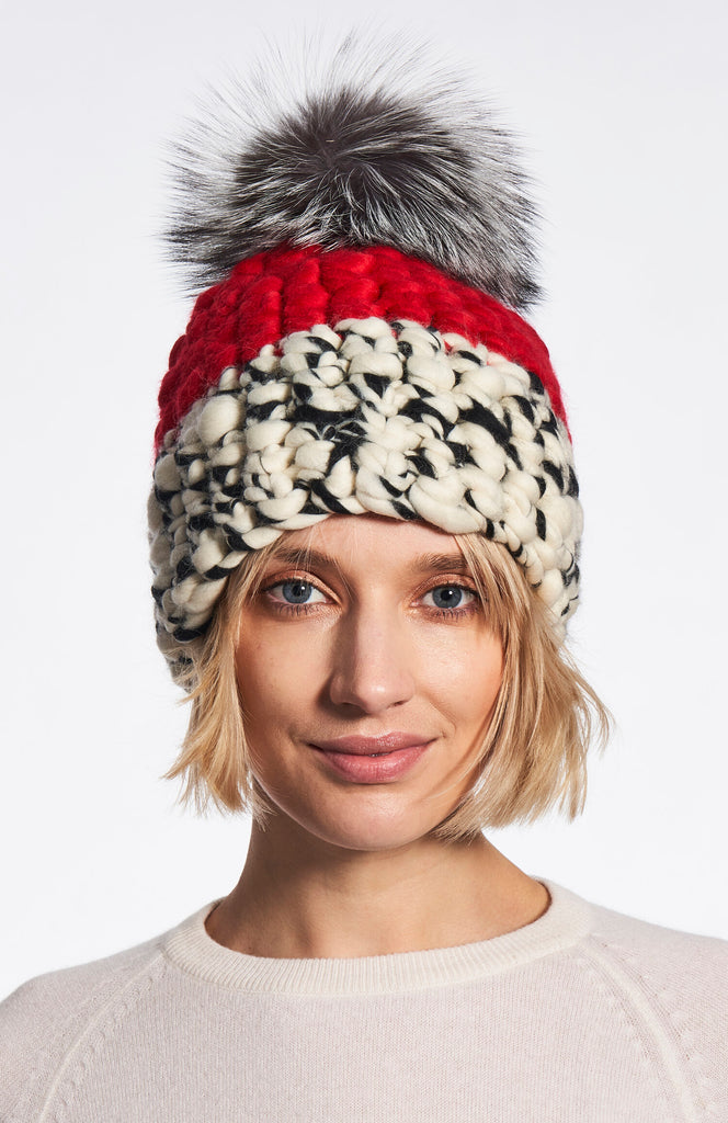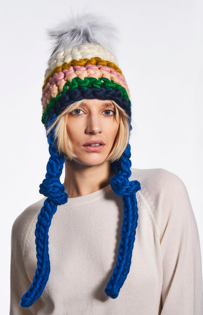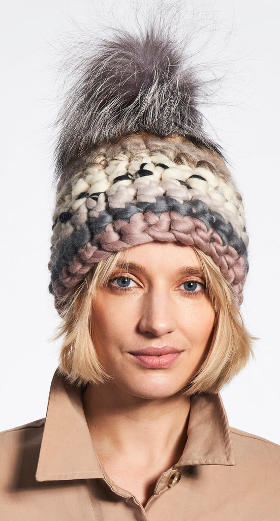 new dawn beanie stripe + silver fox xl pom