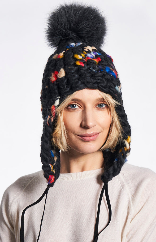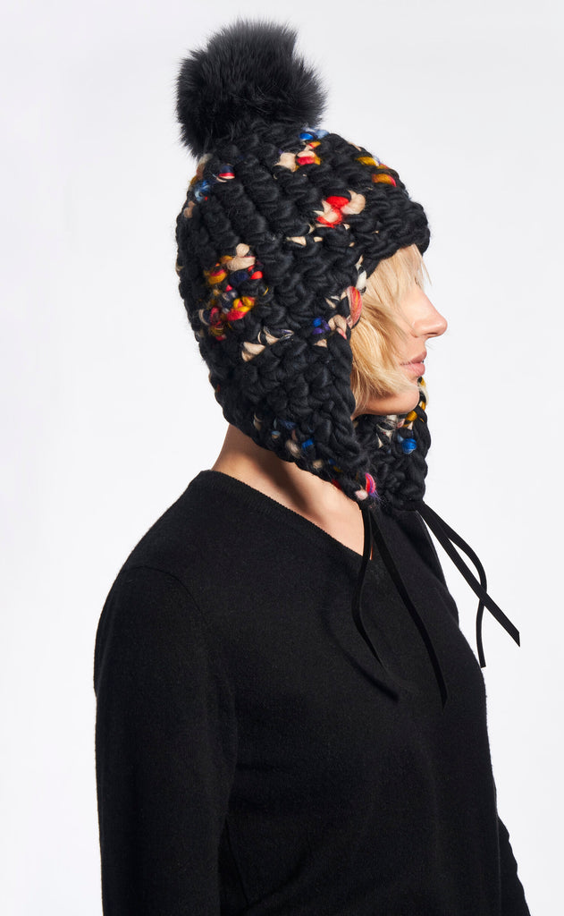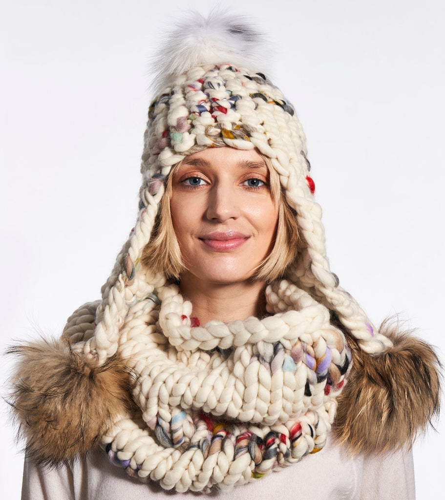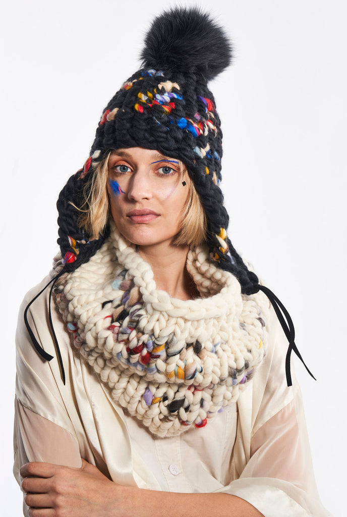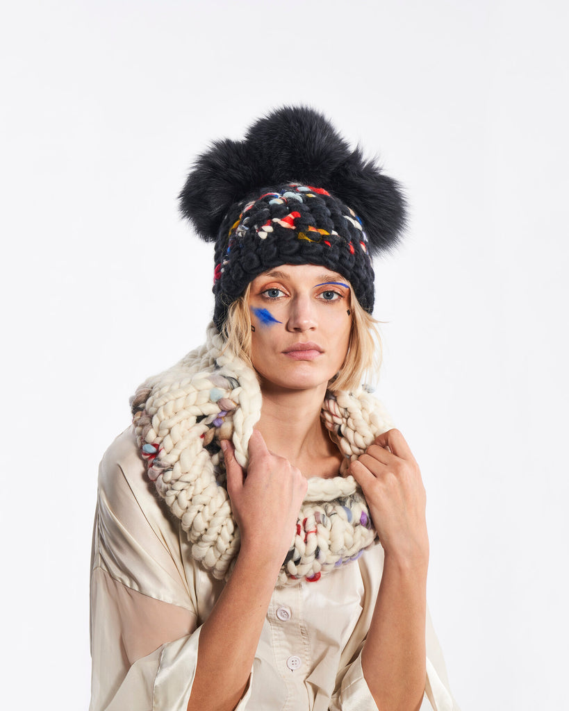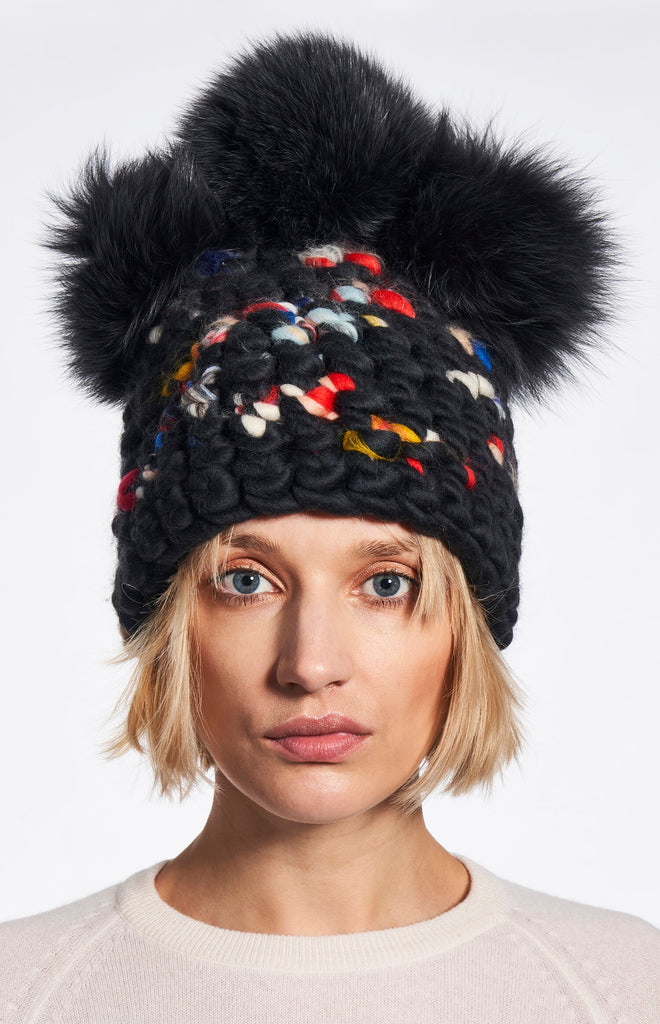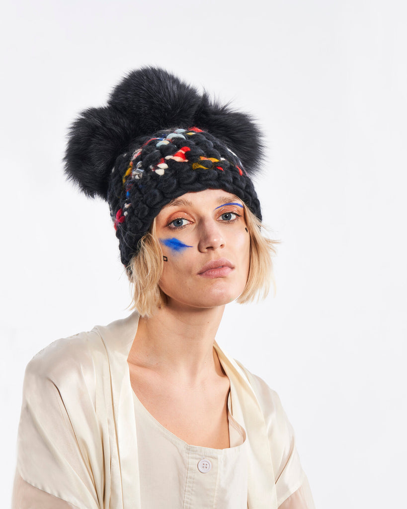 new dawn beanie stripe + silver fox xl pom