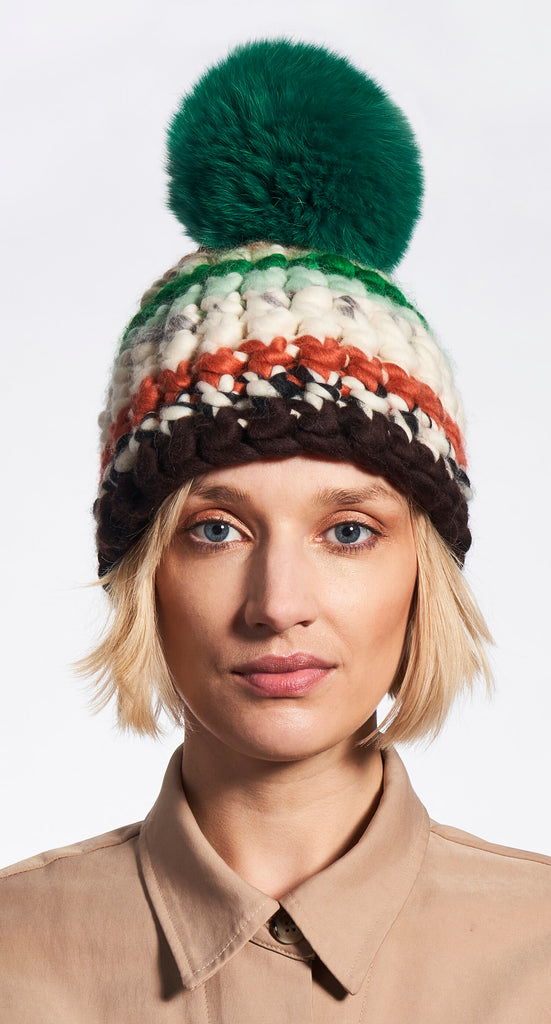 tib beanie stripe + green xl pom