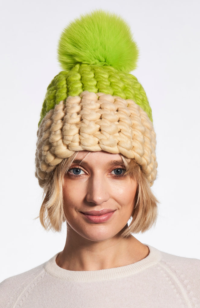 lime | buttermilk beanie color block + lime xl pom